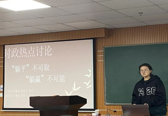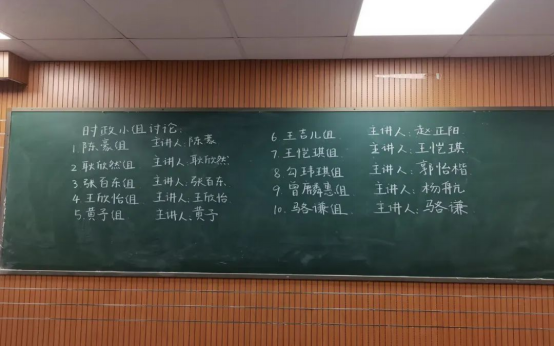 党委副书记熊雅老师带领时政热点小组展开热点话题讨论,由小组代表上台分享各小组讨论内容。