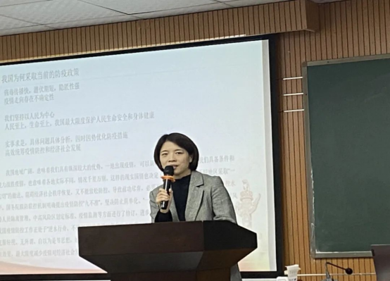 第四组由王欣怡同志进行分享,该小组讨论主题是疫情防控。以美国抗疫的躺平做法所引发的后果和我国疫情的严峻形势得出躺平不可取,躺赢不可能的结论,之后讨论了二十大所提出的二十条,最后进行总结。
