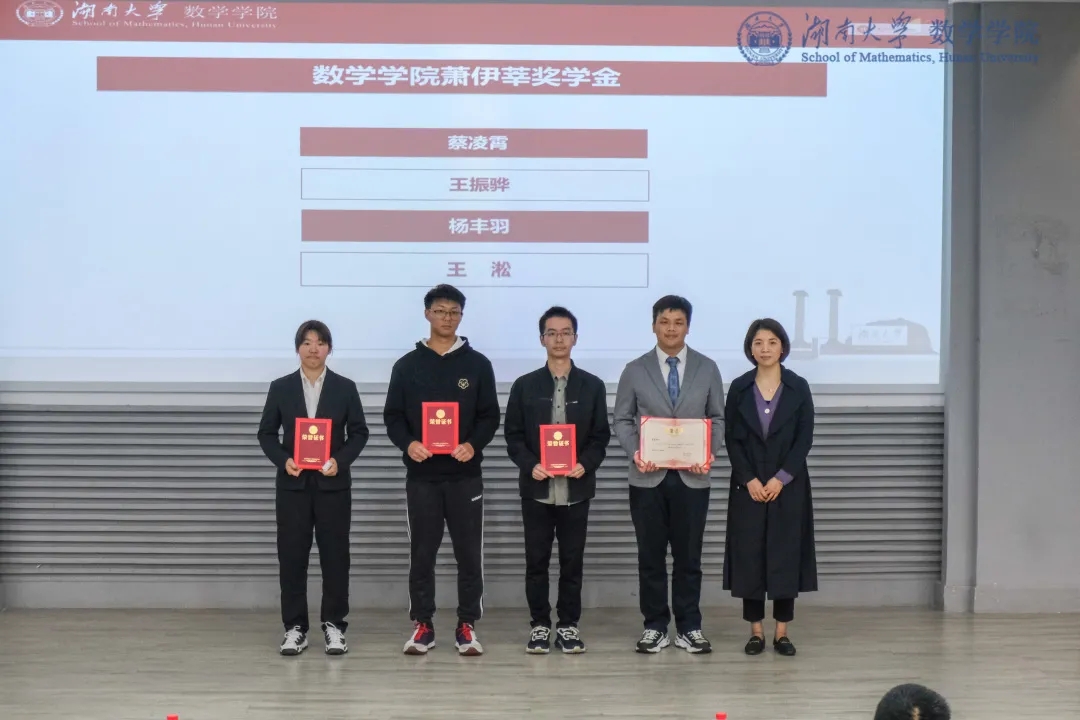 举行学生表彰和颁奖大会,数学与应用数学专业2017级蔡凌霄、2018级王淞,信息与计算科学2017级王振骅、2018级杨丰羽等四名同学获得了2019~2020年度的萧伊莘奖学金。
