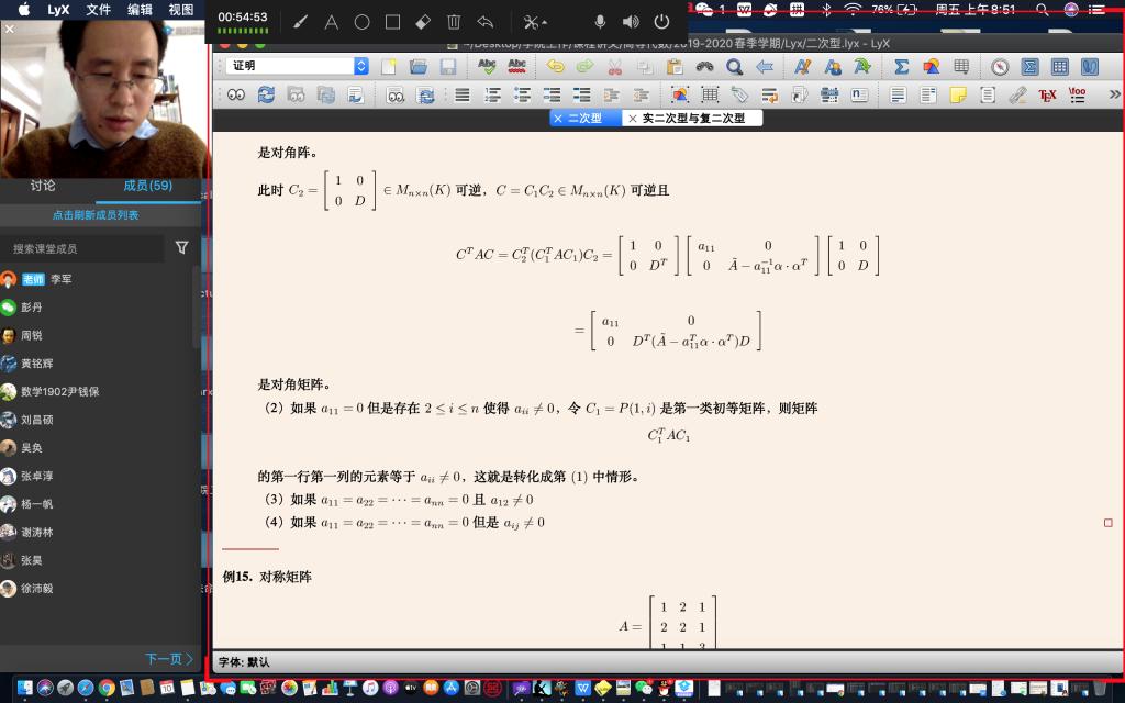 李军教的课是数学专业最重要的基础课之一——《高等代数》。它以严密的逻辑、系统的推理、抽象的思维作为其特点,其内容包括多种线性系统和结构,被广泛地应用到自然科学的各个领域中。课程概念多、内容抽象,正因为如此,高等代数成为大学生心目中最难学的数学课之一。