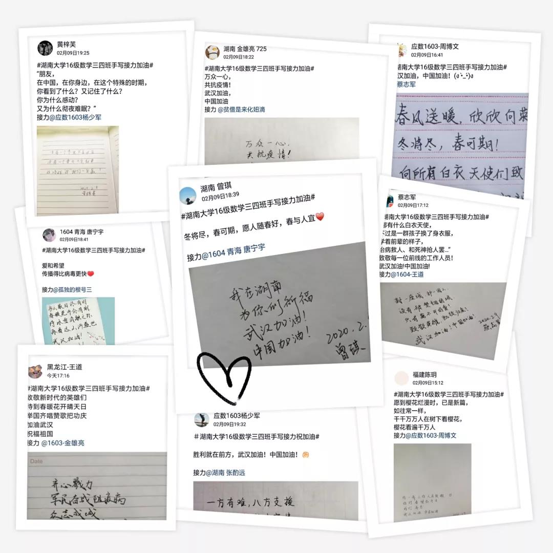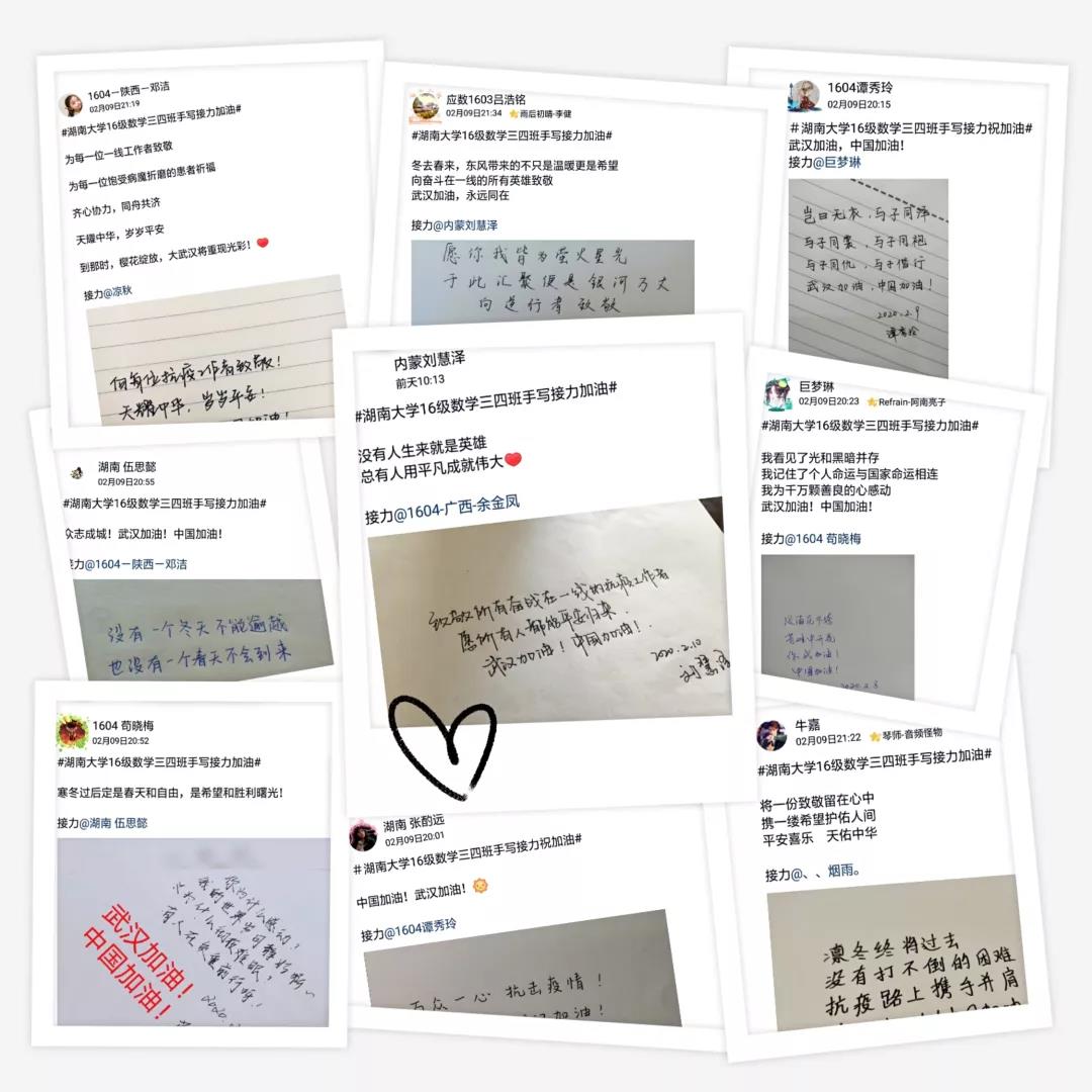 16级数学三四班手写接力加油”活动,利用线上资源,为战“疫”贡献自己的力量。