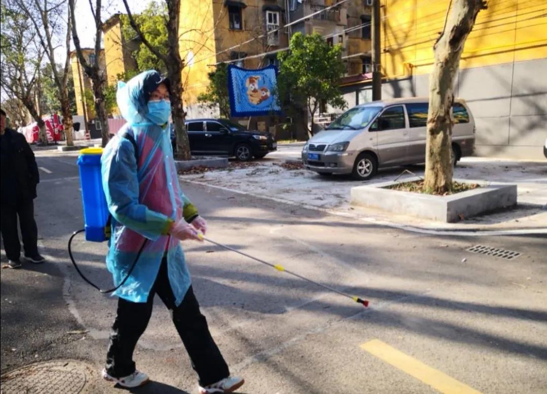 A:和社区工作人员一起,进行社区消毒和上门排查。